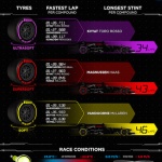 All three compounds were used in the race, with the fastest lap – set right at the end of the race – more than two seconds quicker than last year.