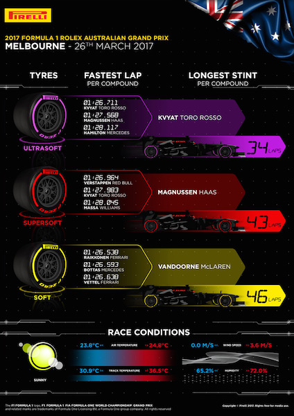 “Formula 1’s new era made a fantastic start in Australia, with close racing and the drivers able to push hard from the start to the finish of each stint," concluded Pirelli's Head of Car Racing, Mario Isola.